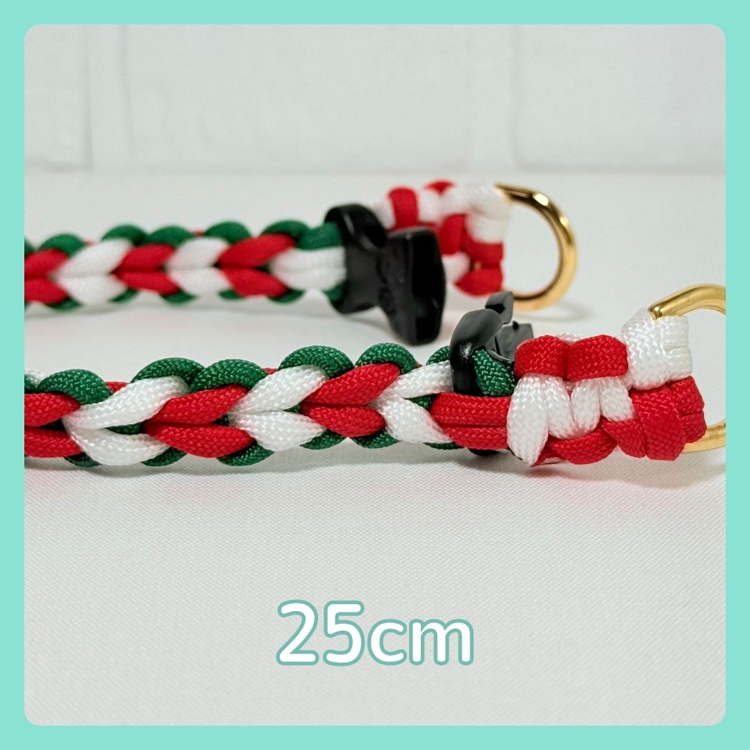 パラコードカラー(バックル)<ハート編み>レッド×グリーン×ホワイト