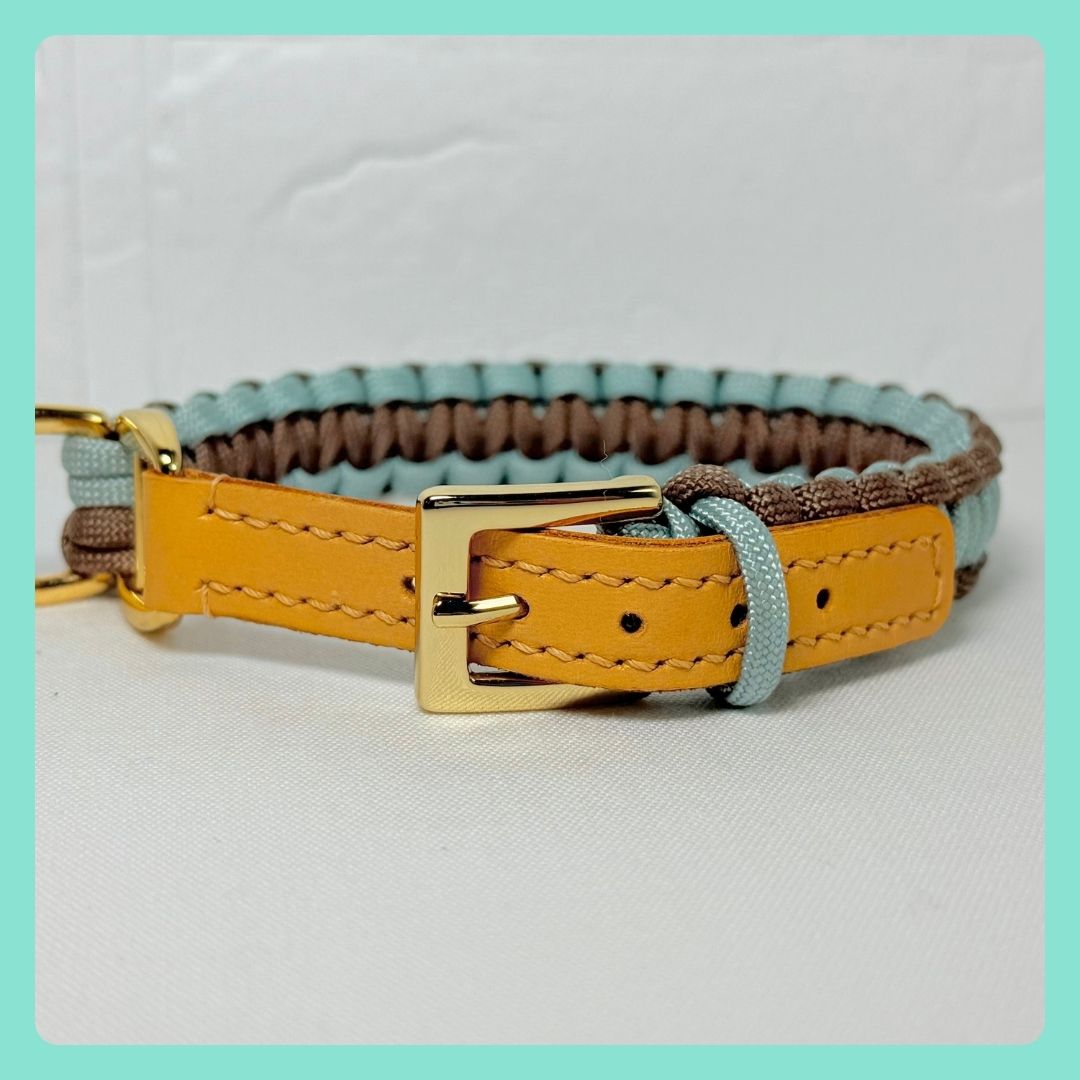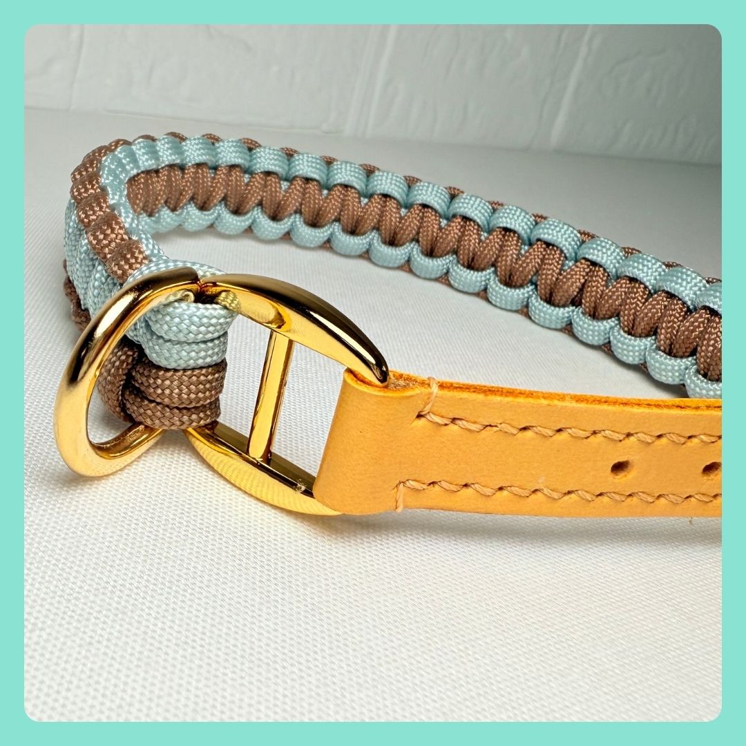 パラコードカラー(レザー)<平編み>ブラウン×スモーキーブルー