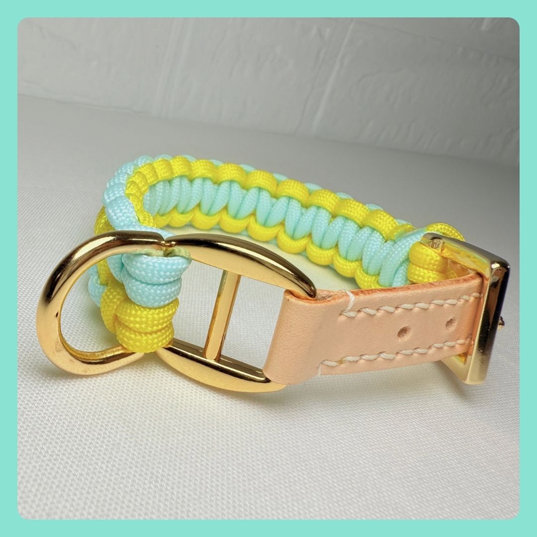パラコードカラー(レザー)<平編み>ベビーブルー×イエロー