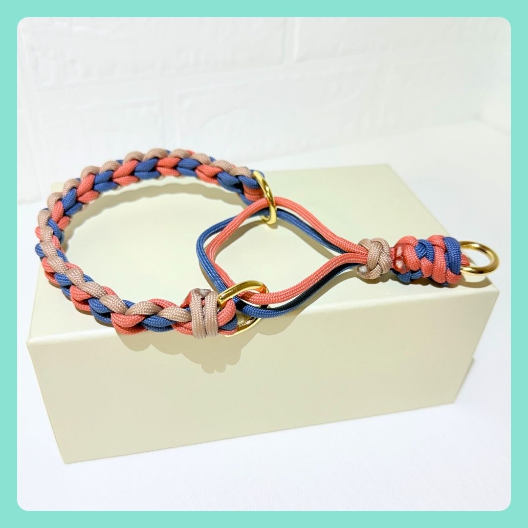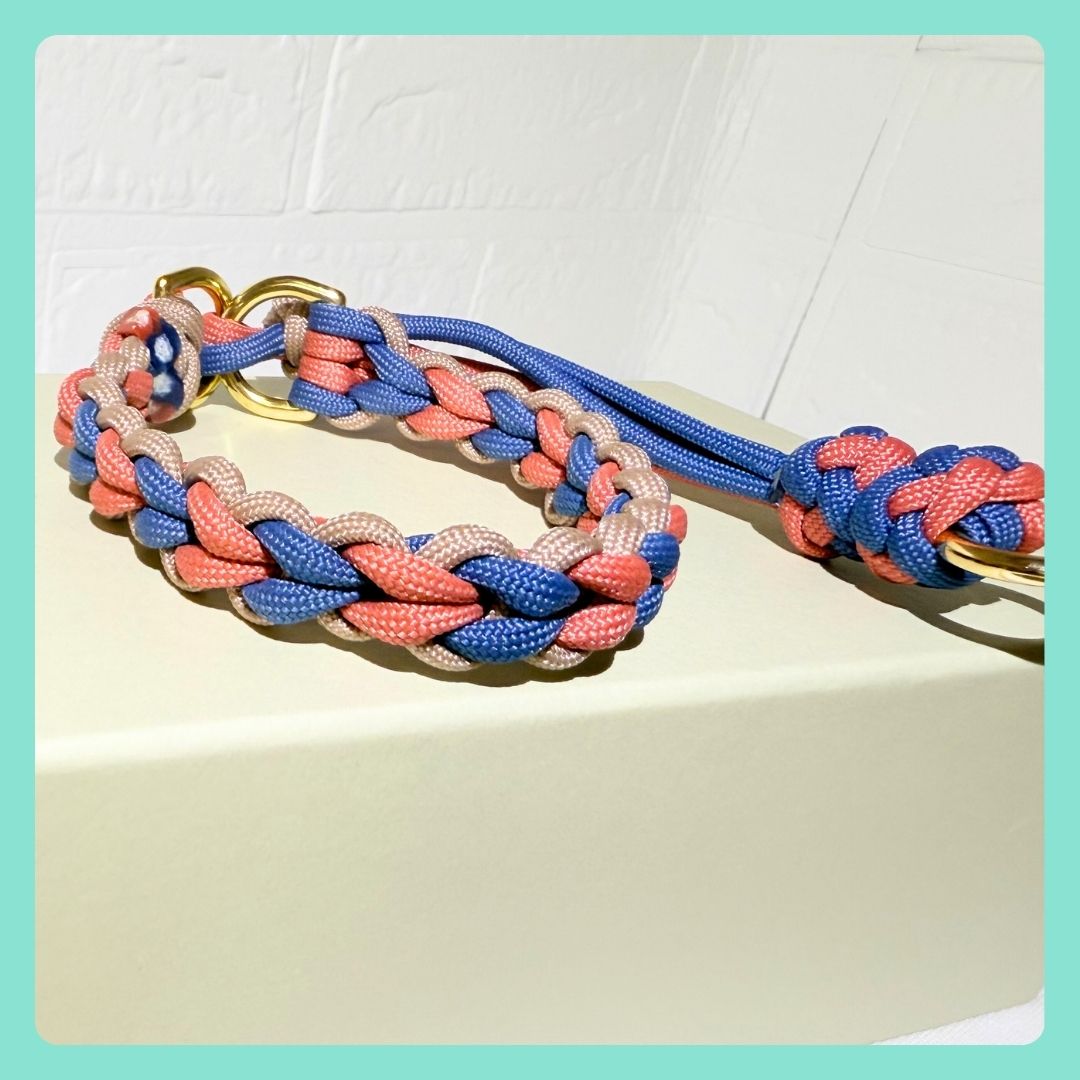 パラコードカラー(ハート編み)テラコッタ&セルリアンブルー&ピンクベージュ