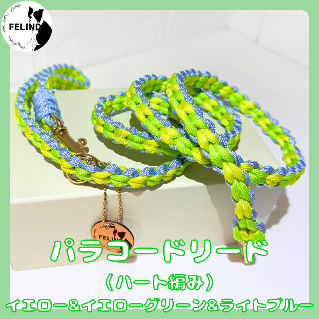 パラコードリード(ハート編み)イエロー&イエローグリーン&ライトブルー