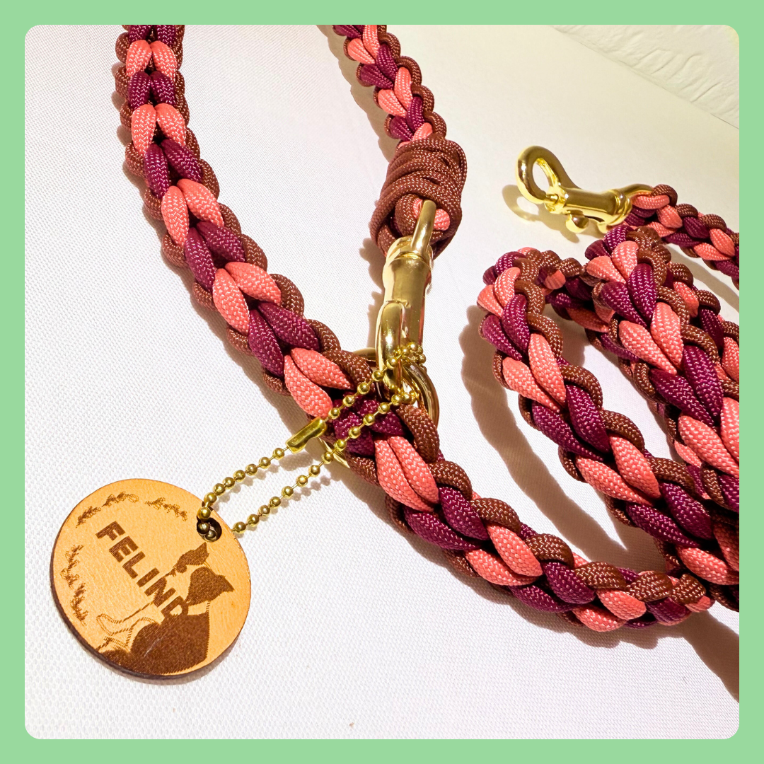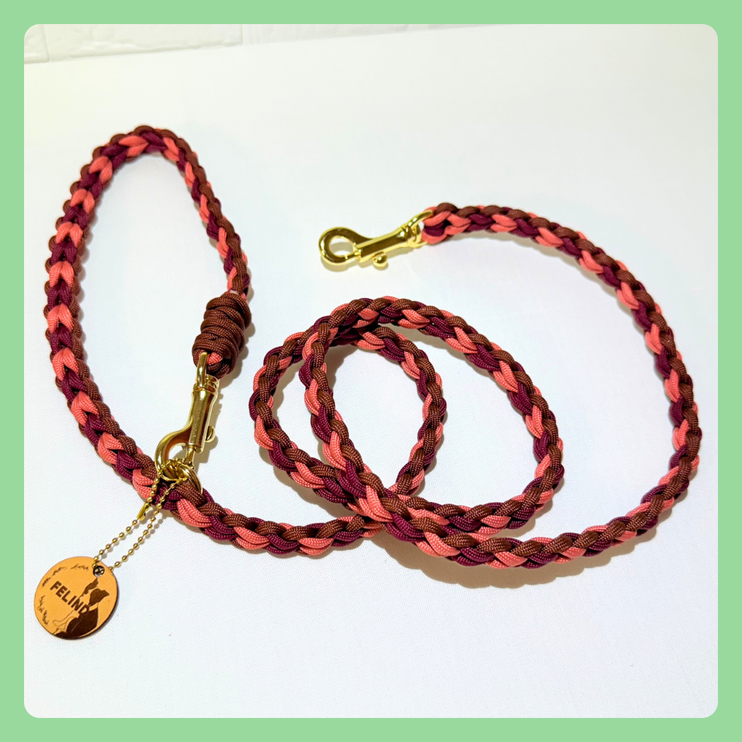 パラコードリード(ハート編み)テラコッタ&ワインレッド&ブラウン