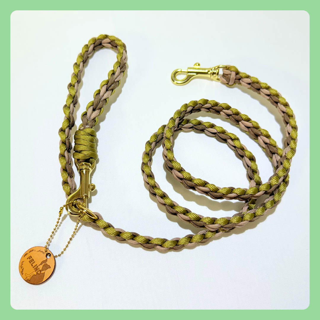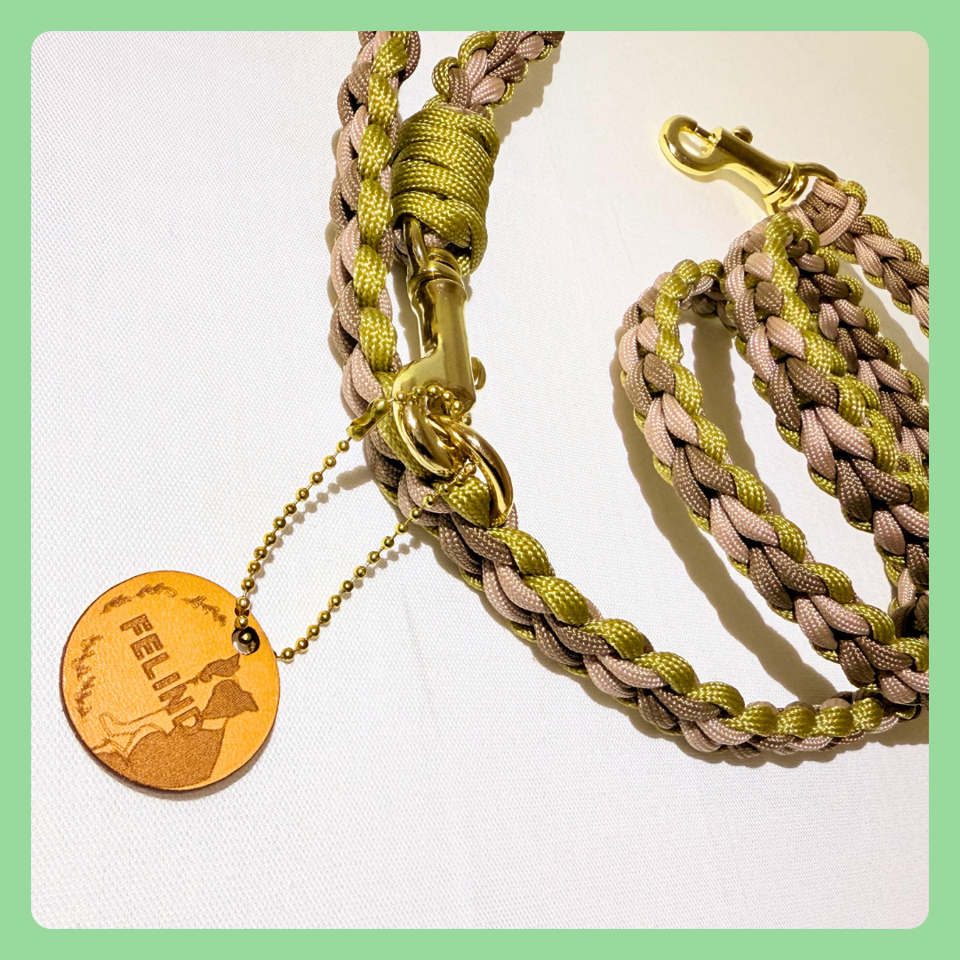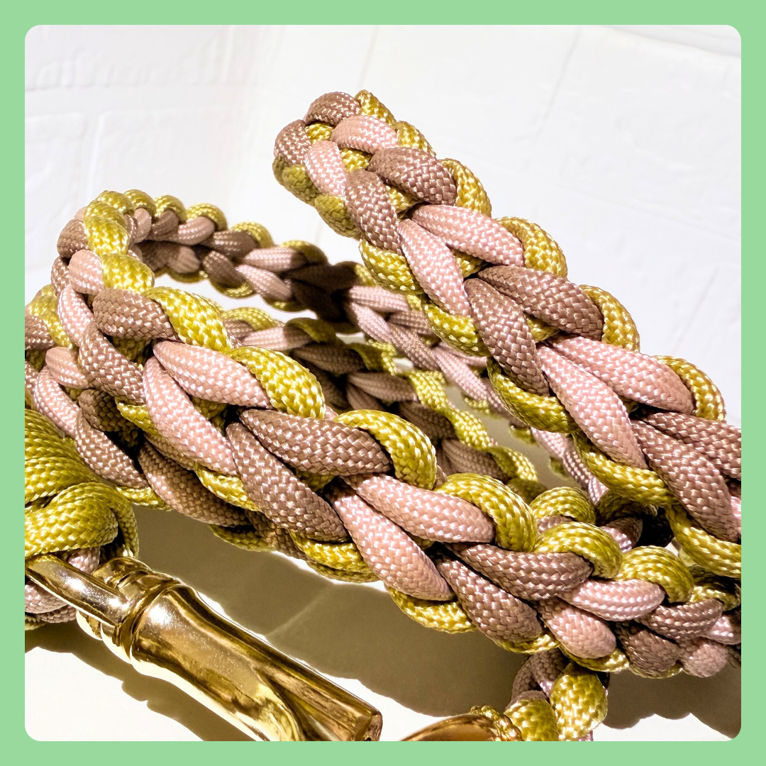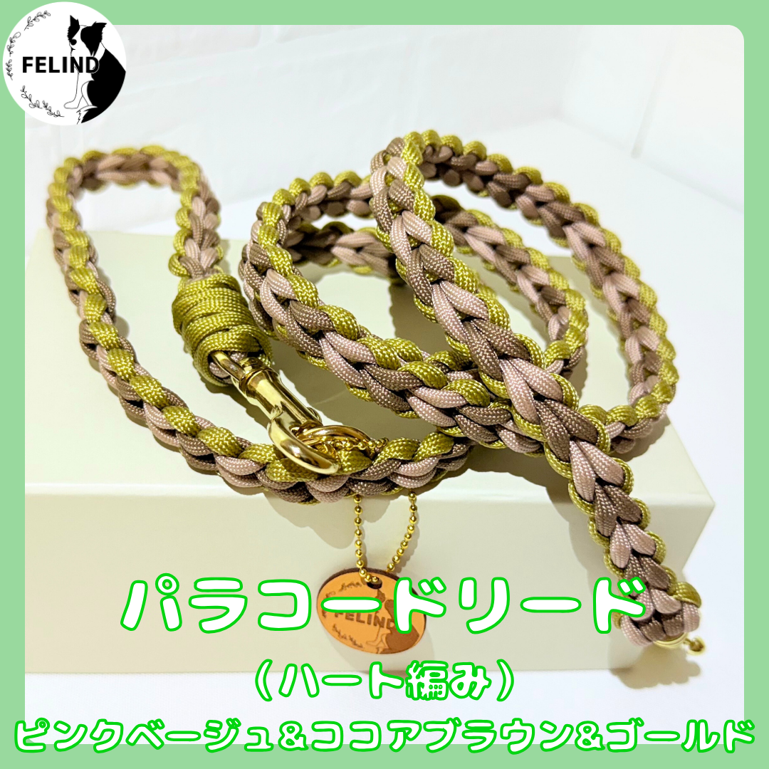 パラコードリード(ハート編み)ピンクベージュ&ココアブラウン&ゴールド