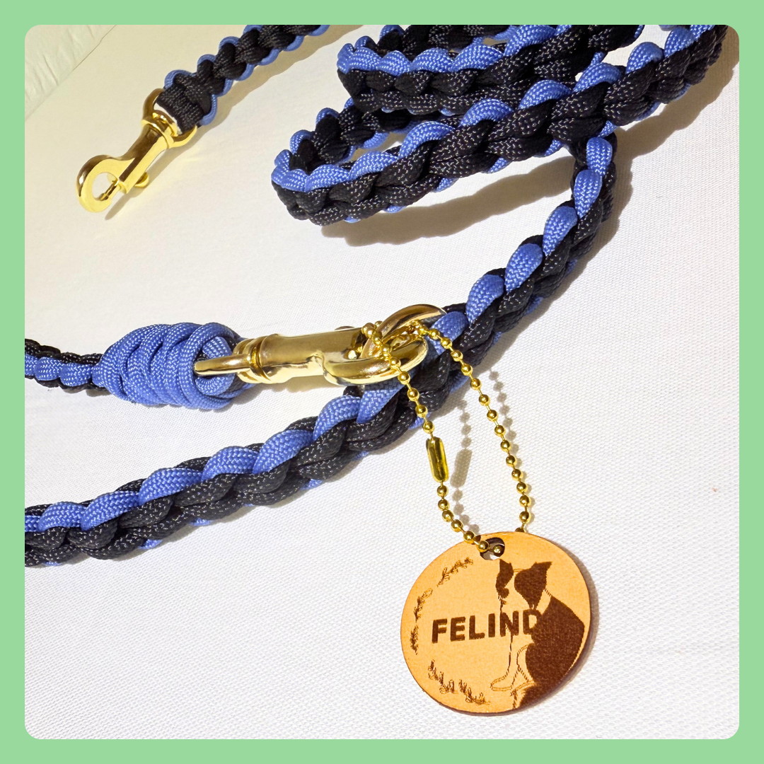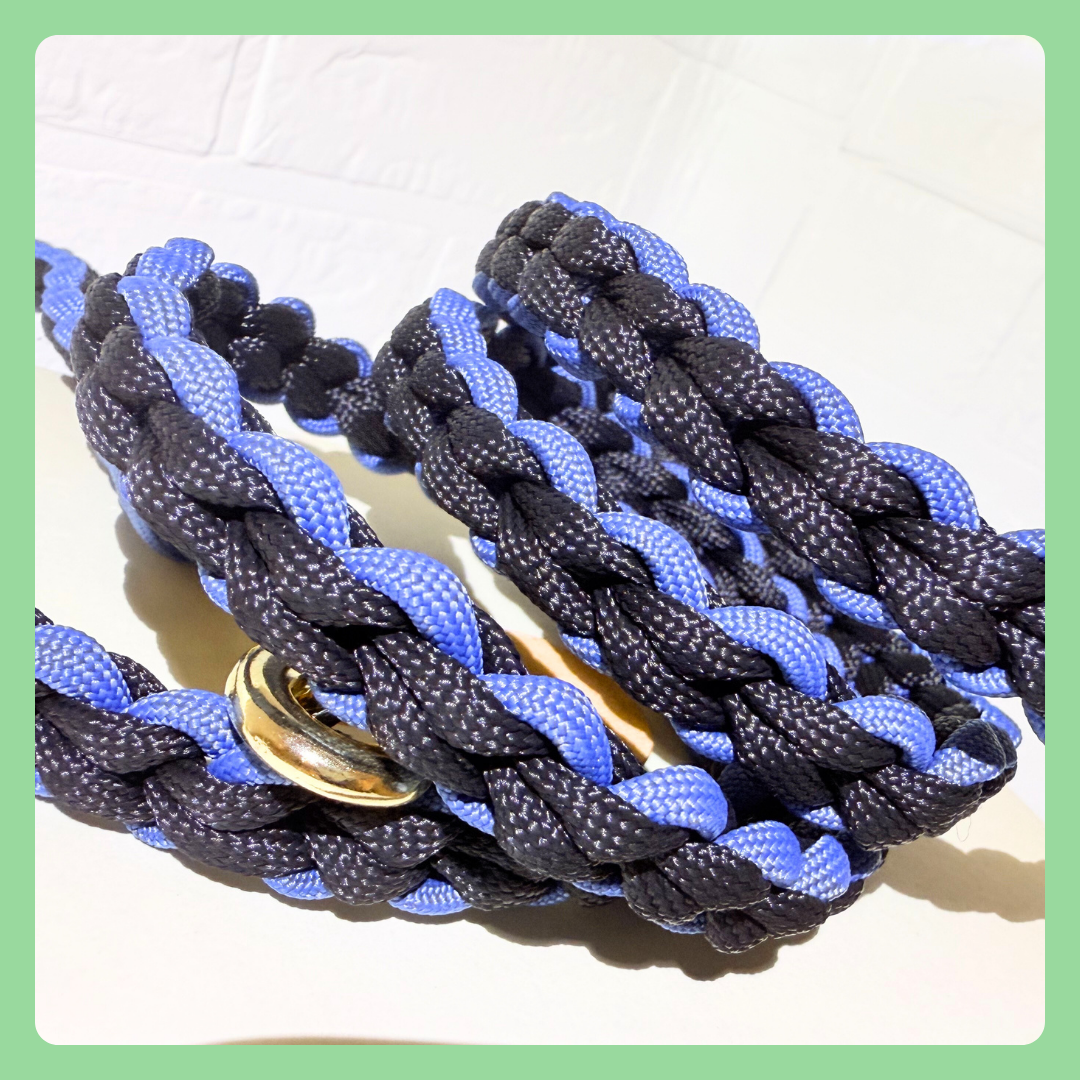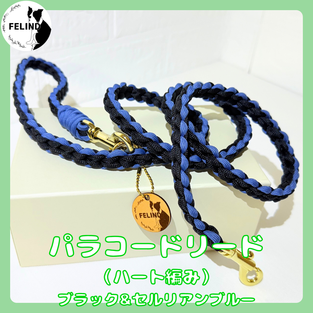 パラコードリード(ハート編み)ブラック&セルリアンブルー
