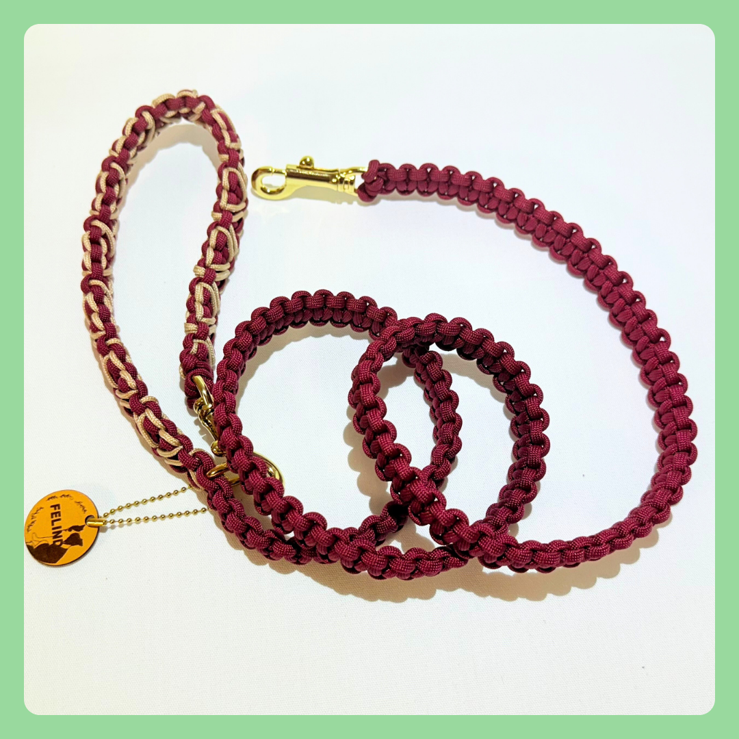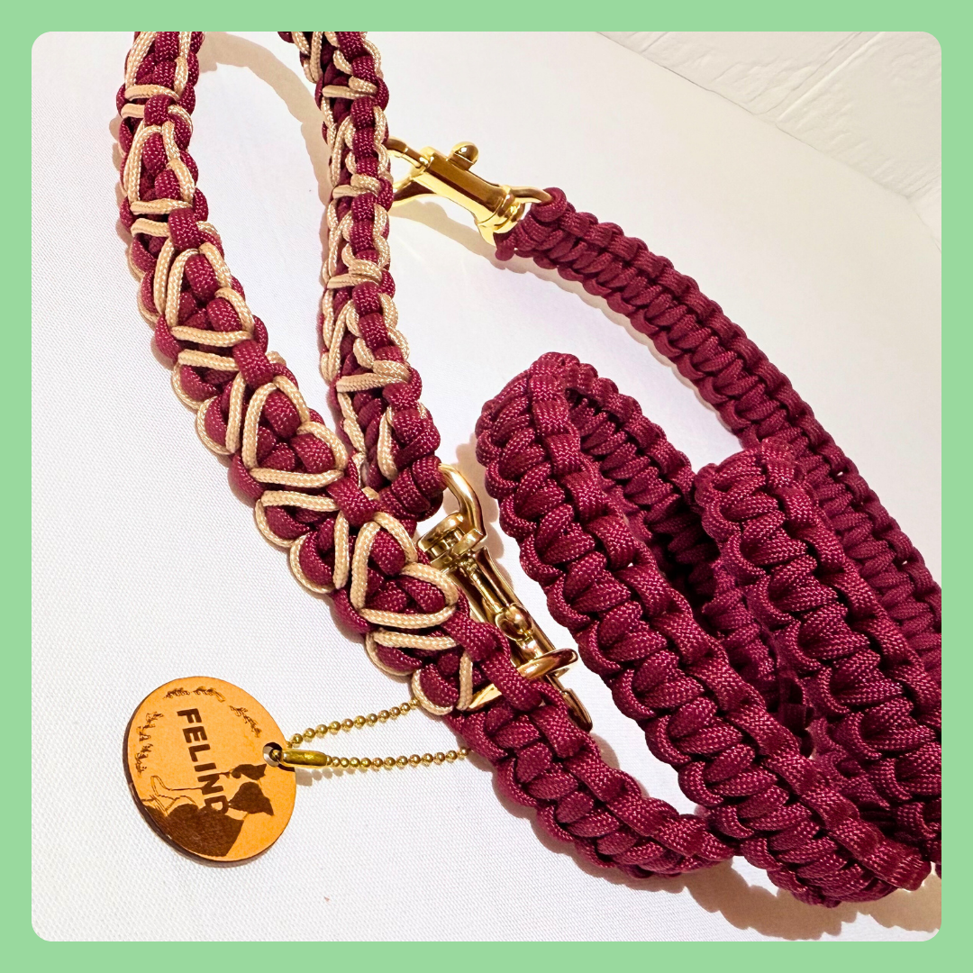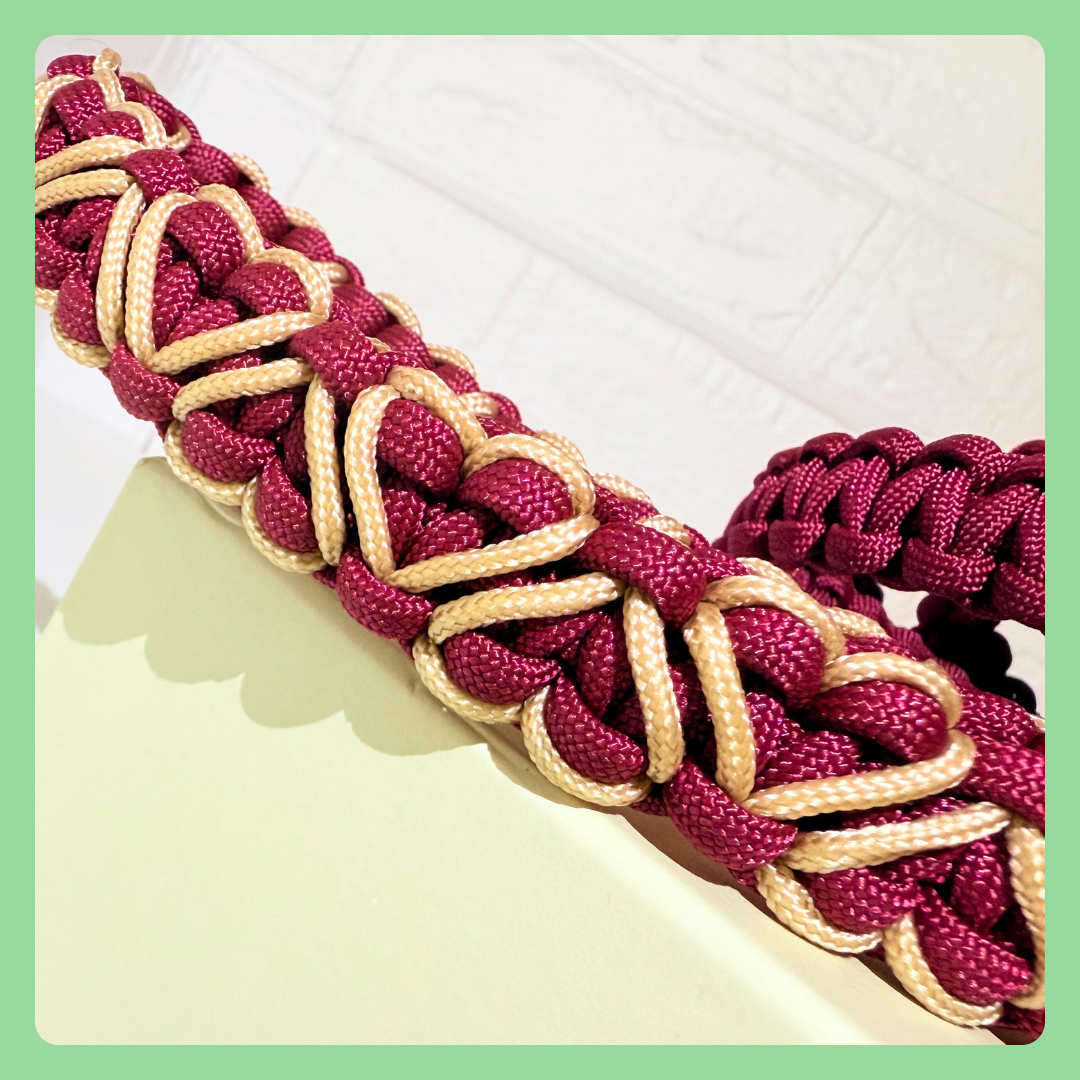 パラコードリード(平編み-ハートアレンジ)ワインレッド&ベージュ