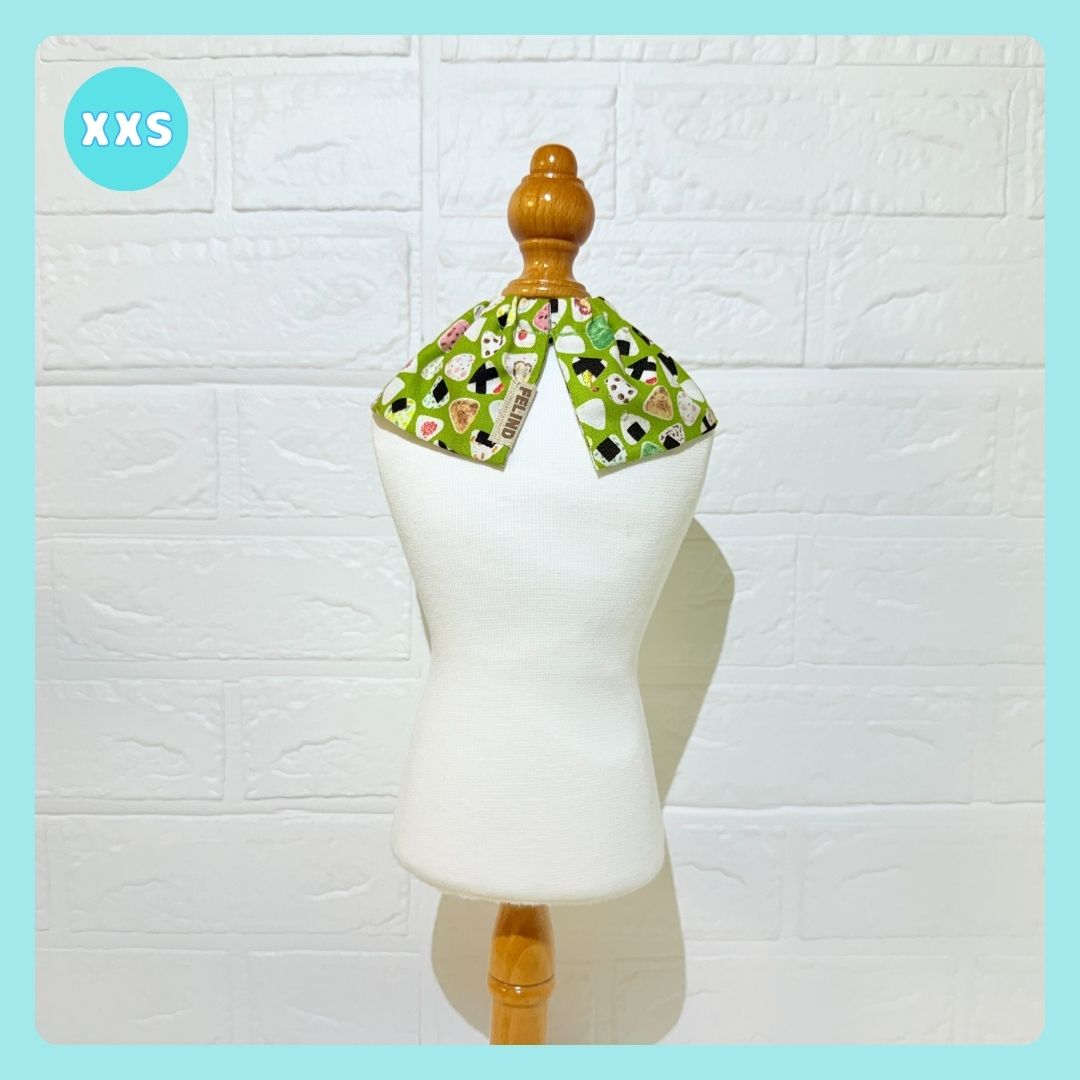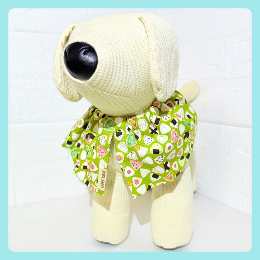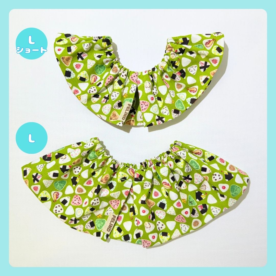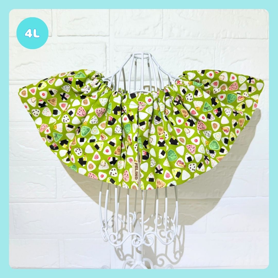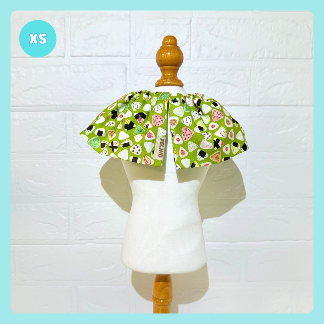 おにぎり柄の緑色の生地が可愛らしいケープです♪